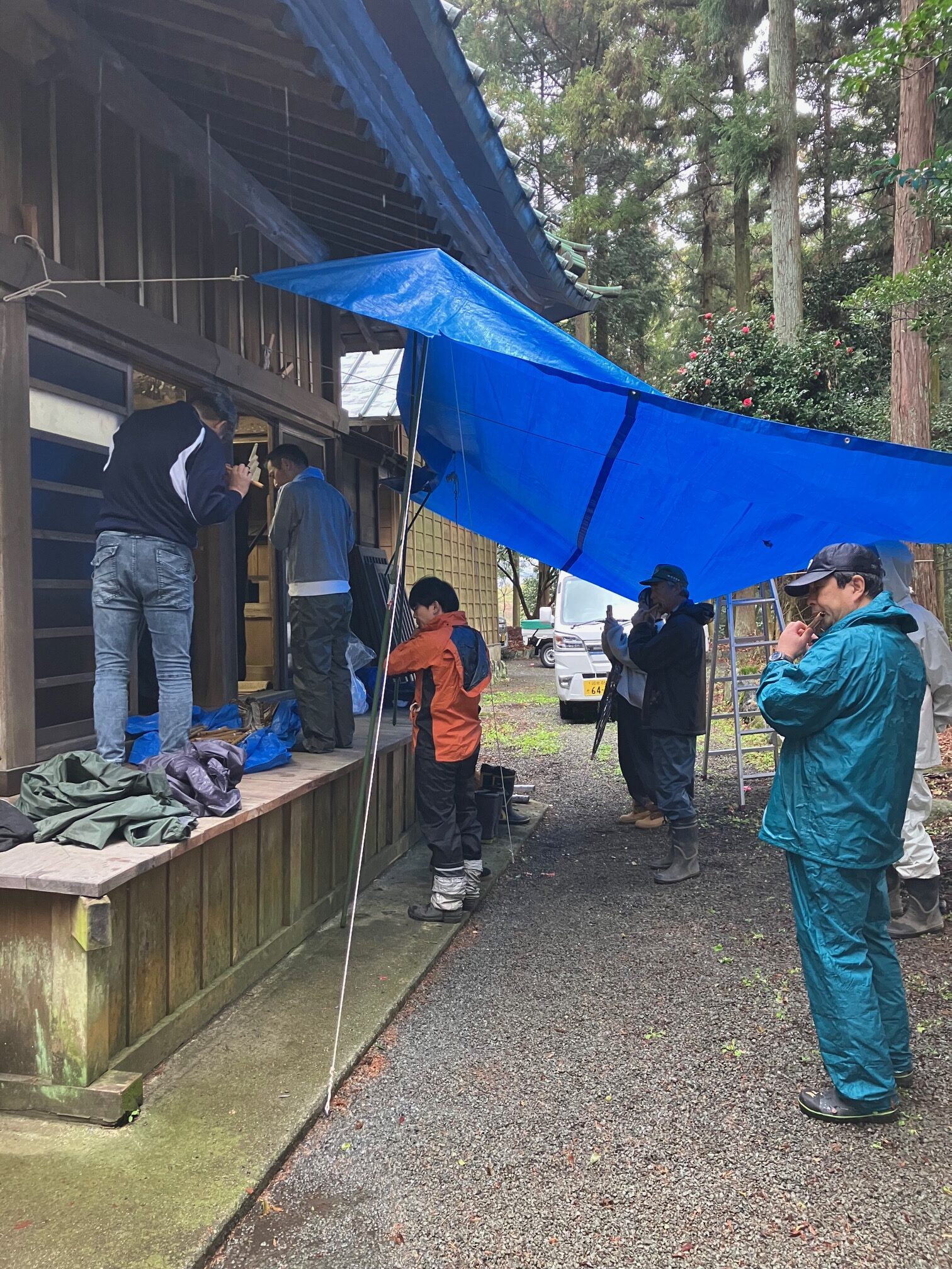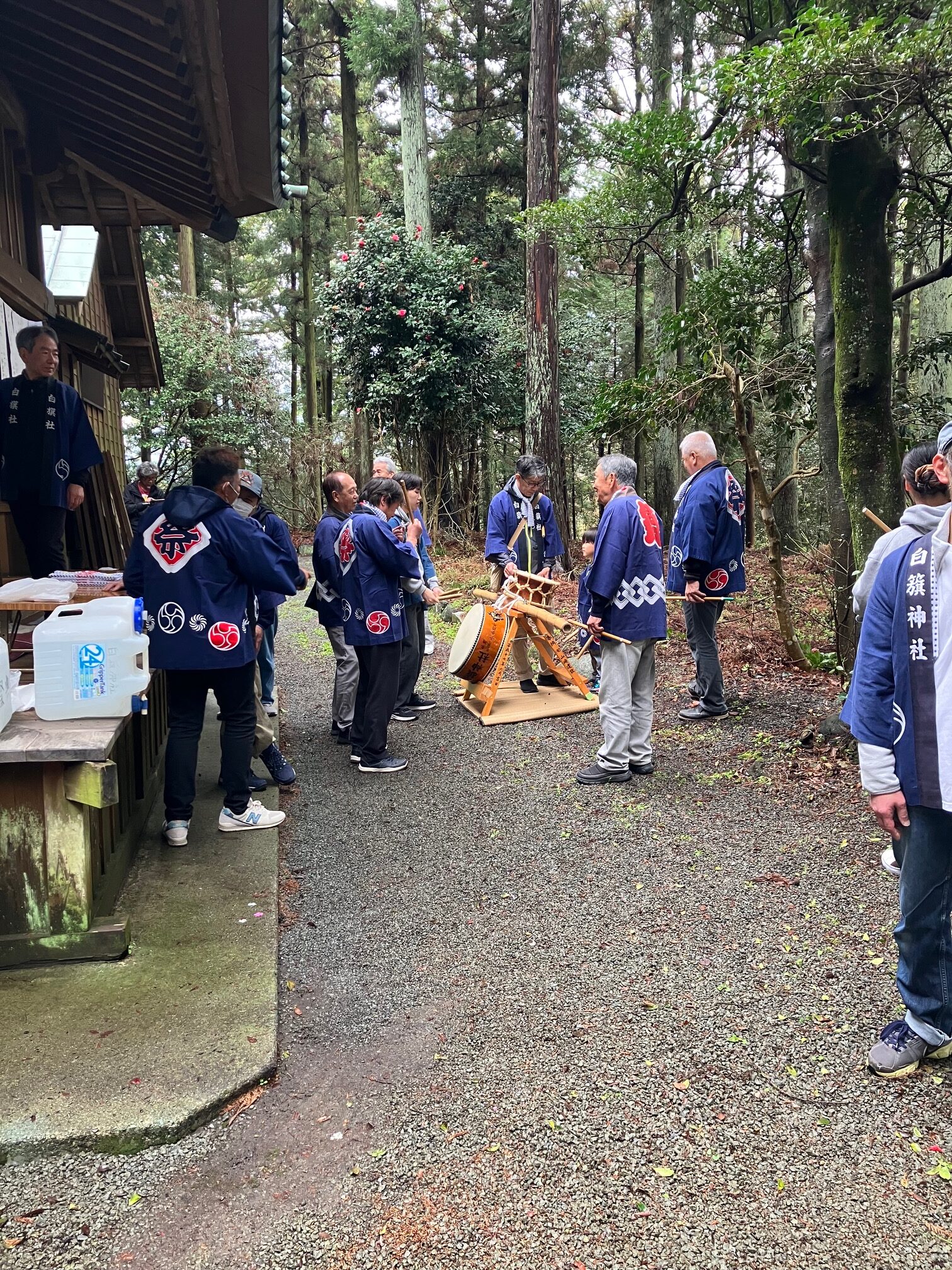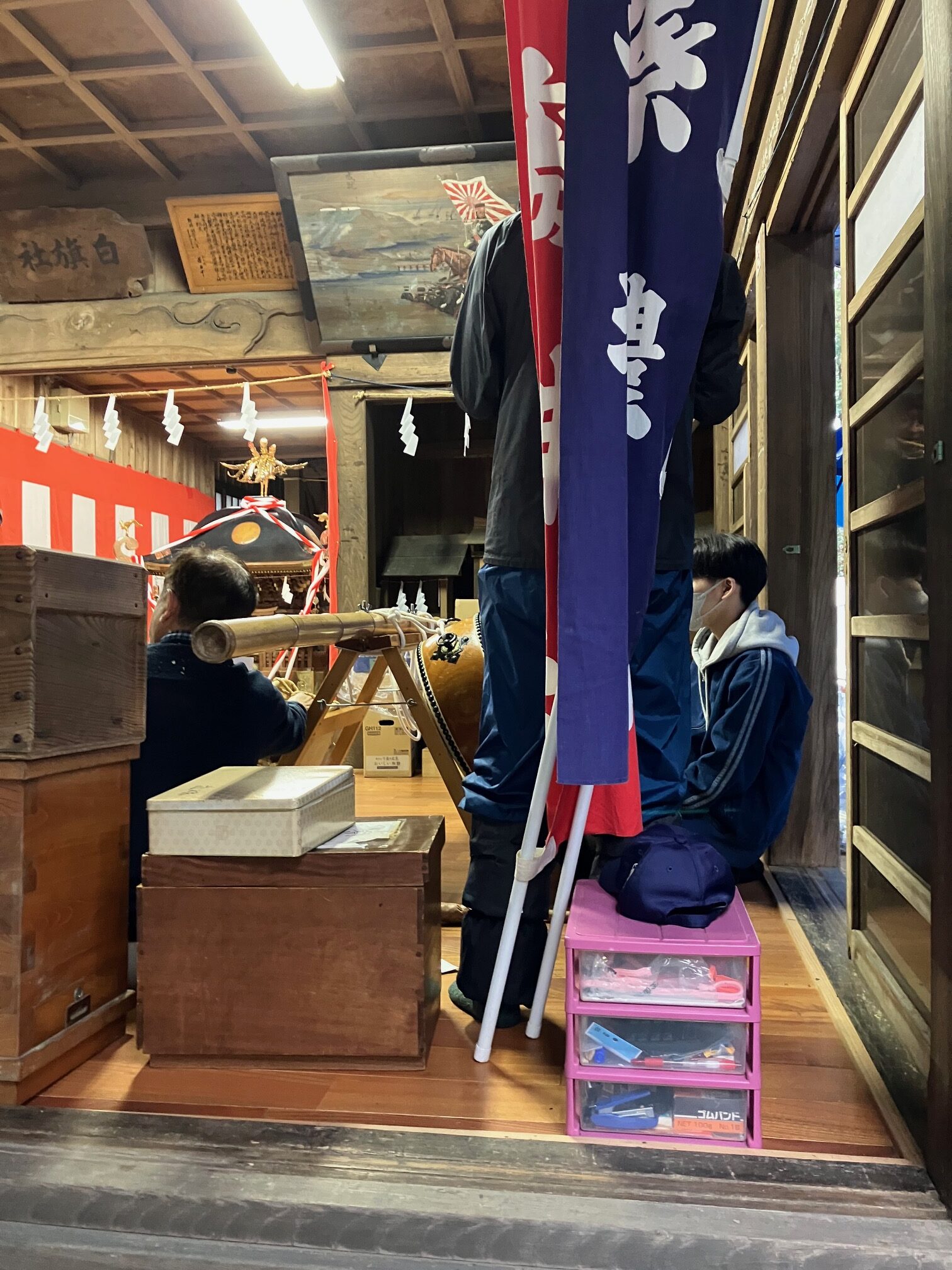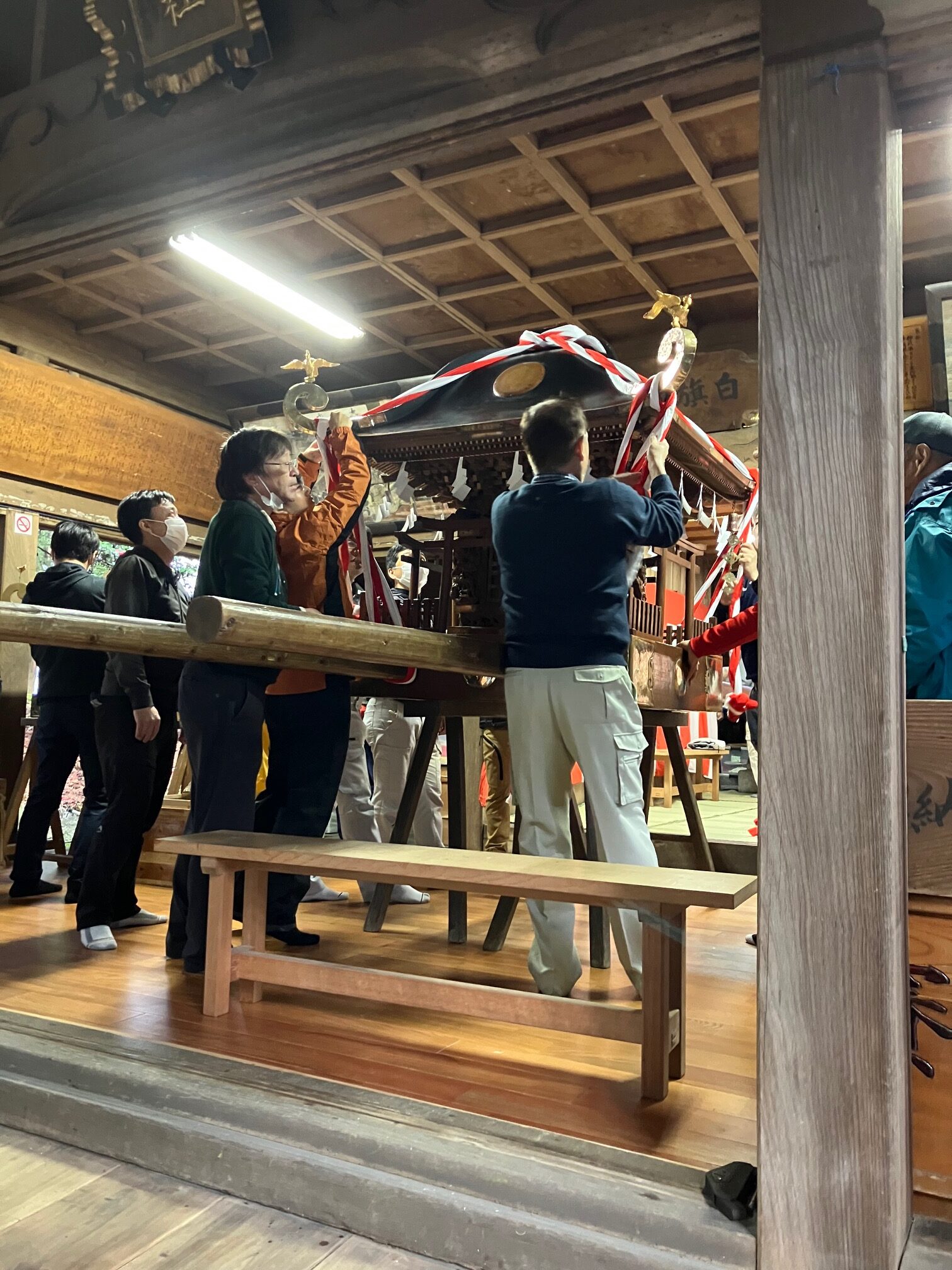 令和8年4月5日に行われる白旗神社大祭に向け、4日13:00より参道の整備、花飾り、神輿準備等の大祭準備を行いました。
